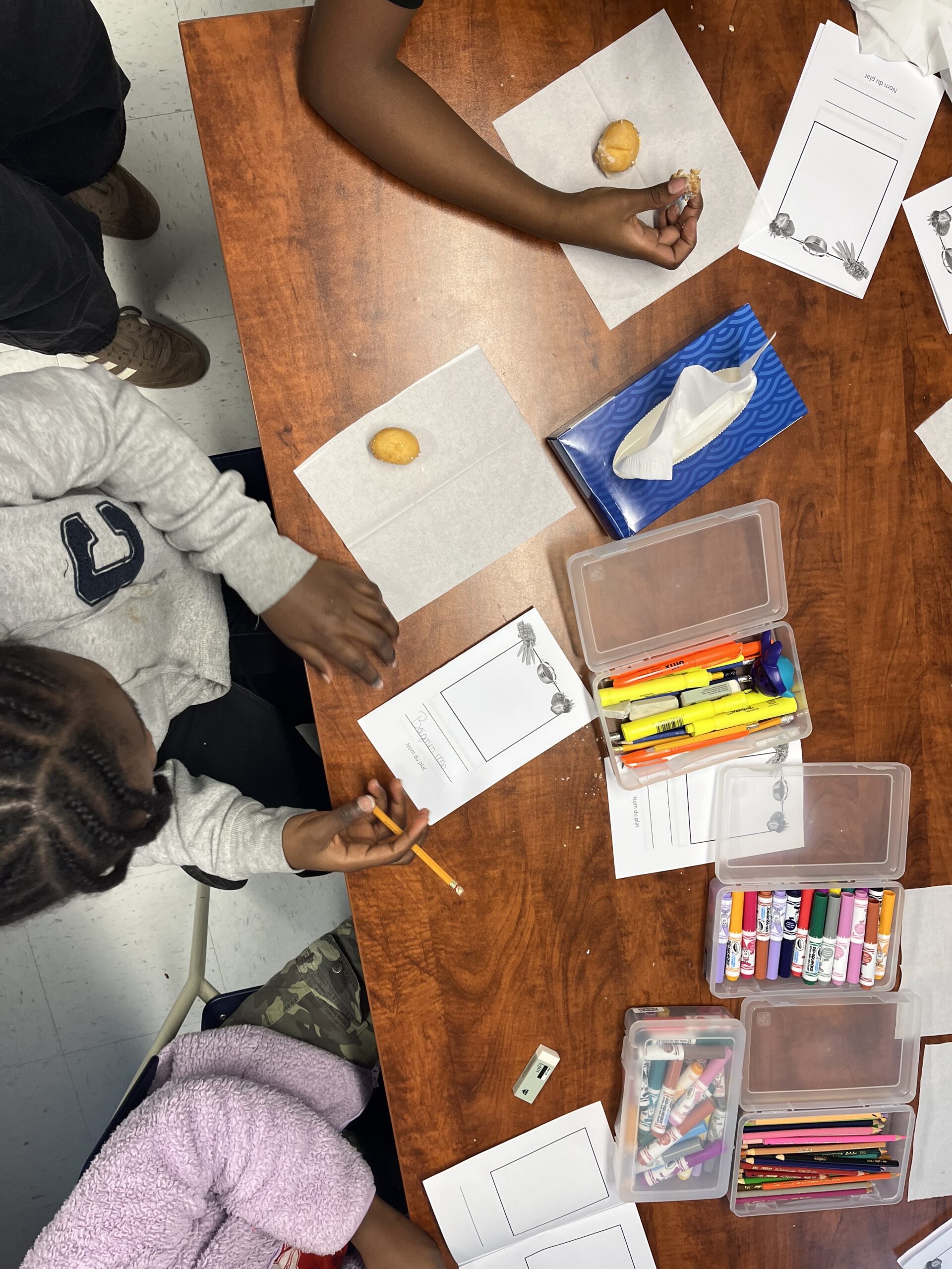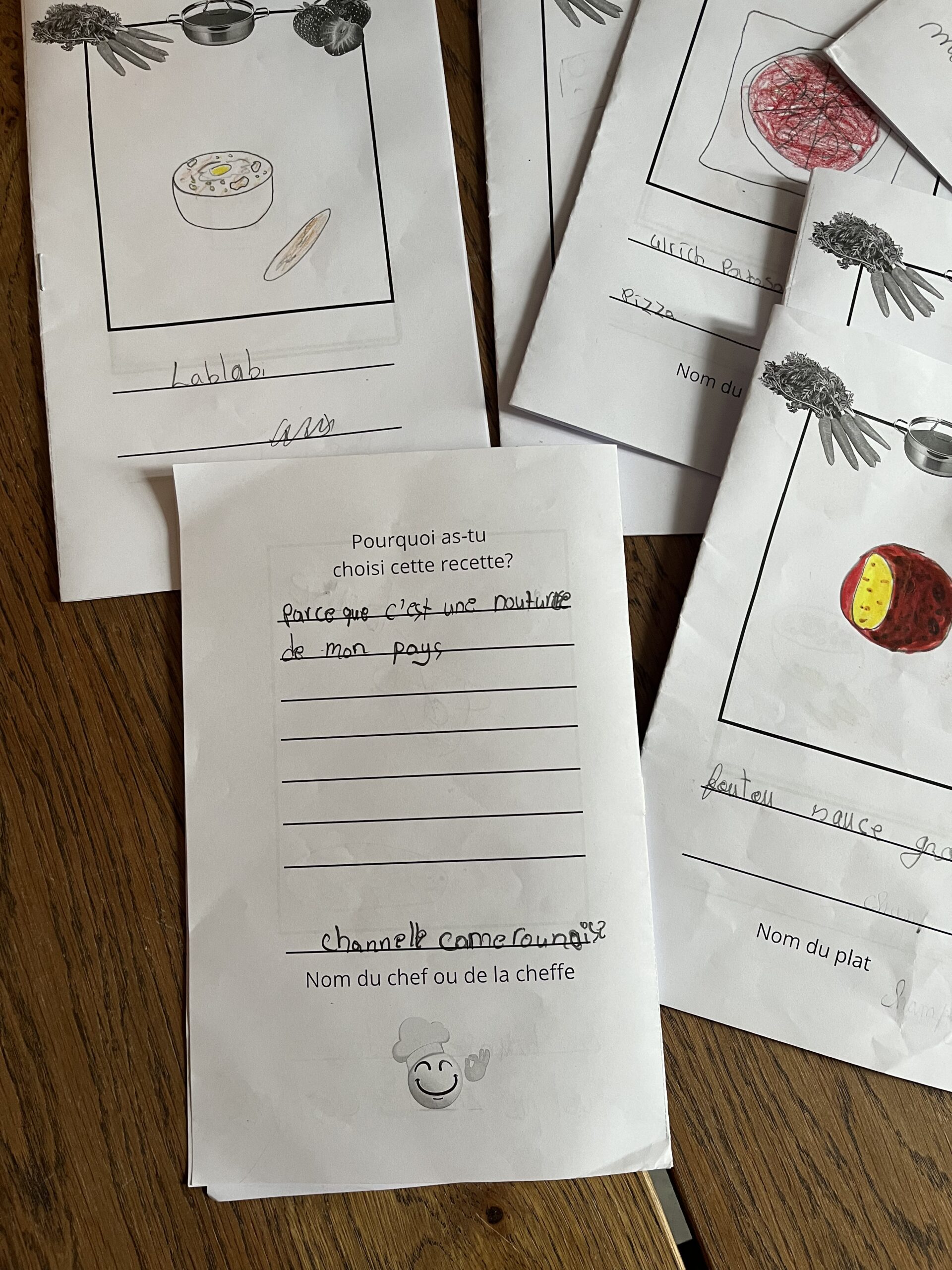 Enseignante du français langue seconde, Catherine Fillion travaille dans la ville de Québec et se spécialise en alpha-francisation. Elle et ses élèves de niveau primaire – des nouveaux arrivants et nouvelles arrivantes au Québec – ont participé aux activités menées dans le cadre du Projet commun no 3, dont un atelier artistique autour du livre de recettes. Cette collaboration nous a permis d’approfondir l’idée d’hospitalité, au coeur des réflexions curatoriales d’Ally, et d’explorer la notion d’identité, qui habite le travail artistique de Samah.